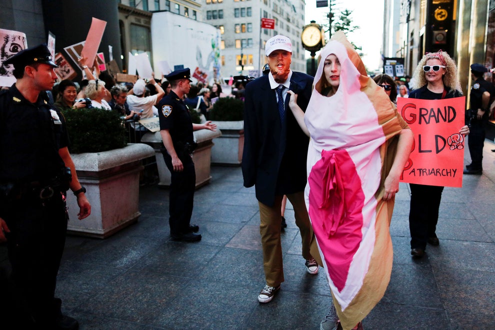 A woman dressed as a vagina at the Pussy Power at Trump Tower rally on Oct. 19. Eduardo Munoz / Reuters