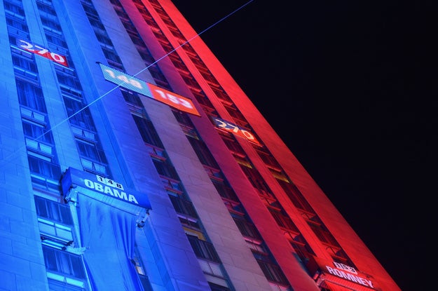 The GE Building at 30 Rockefeller Center showing polling results from the 2012 Presidential Election Michael Loccisano / Getty Images